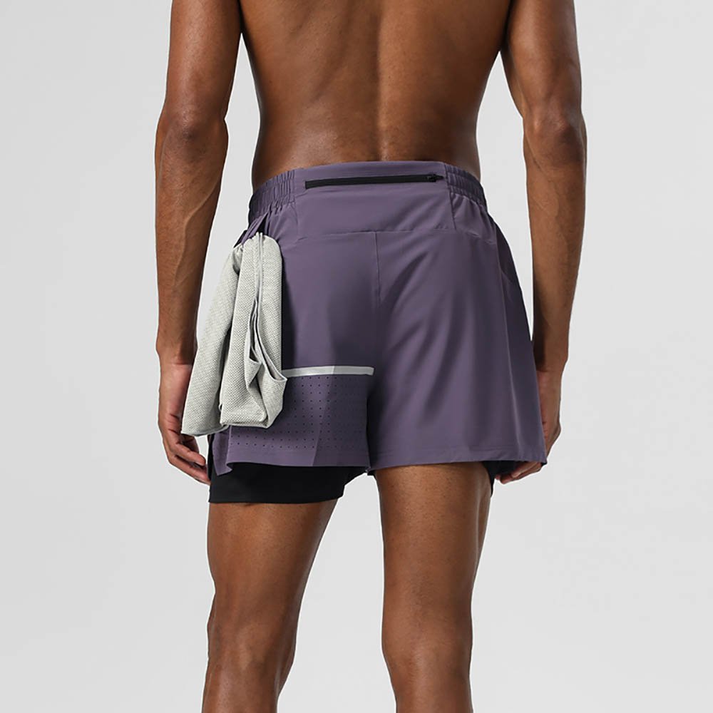 Durability meets practicality with reflective strips that enhance visibility during early morning or late-night runs, ensuring safety in low-light conditions. The lightweight 105GSM fabric is engineered for intense workouts, providing optimal ventilation and moisture-wicking capabilities. A unique towel clip design allows you to stow gym towels or similar items conveniently, giving you easy access during high-energy exercises. The shorts are available in stylish colors such as Black, Purple Gray, and Navy Blue, blending fashion with function for a sleek athletic look.