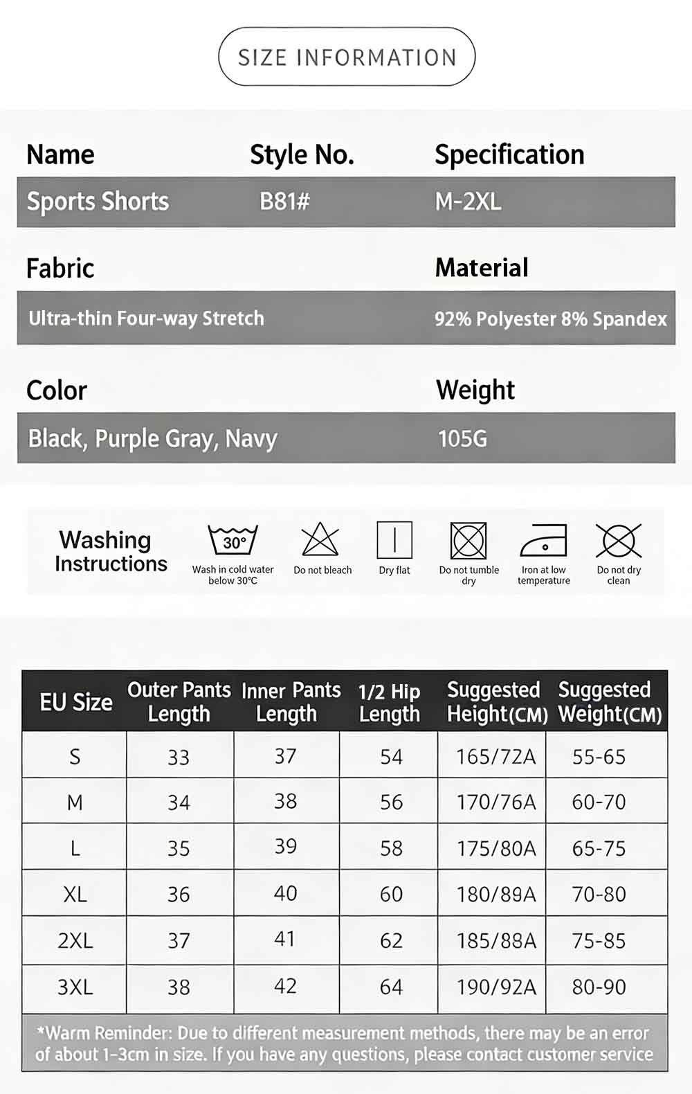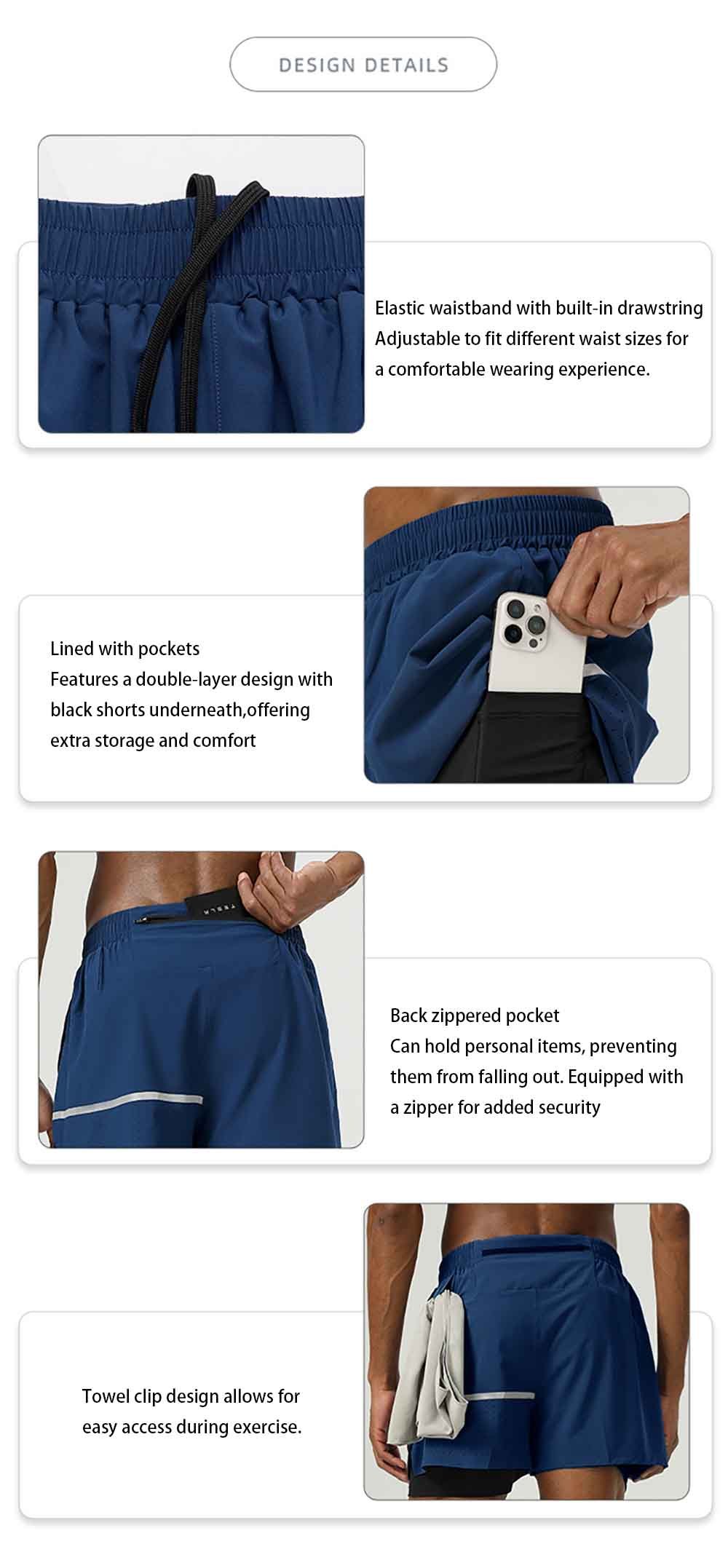 These shorts pack clever features to ensure effortless wear and utility. The elastic waistband with a built-in drawstring enables a snug yet adjustable fit for waist sizes ranging from S to 3XL. The innovative double-layer design integrates inner black shorts for added support and functionality, while convenient side pockets allow you to store essentials like your phone, keys, or cards. Additionally, the secure back zippered pocket keeps items safe and prevents them from falling out, making it ideal for runners, gym-goers, and outdoor enthusiasts.