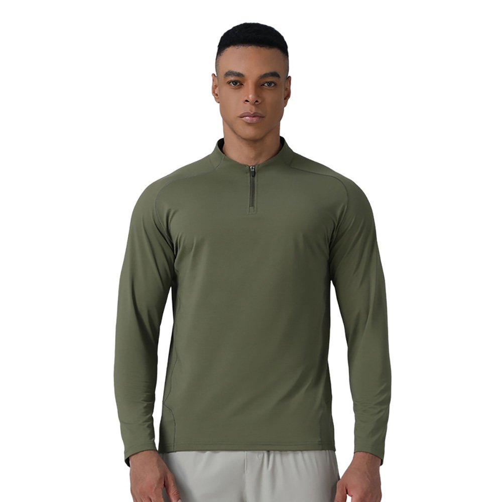 Long-sleeved T-shirt, sports cycling outfit, training clothes, fitness tights, men’s fleece-lined half-zip sports top